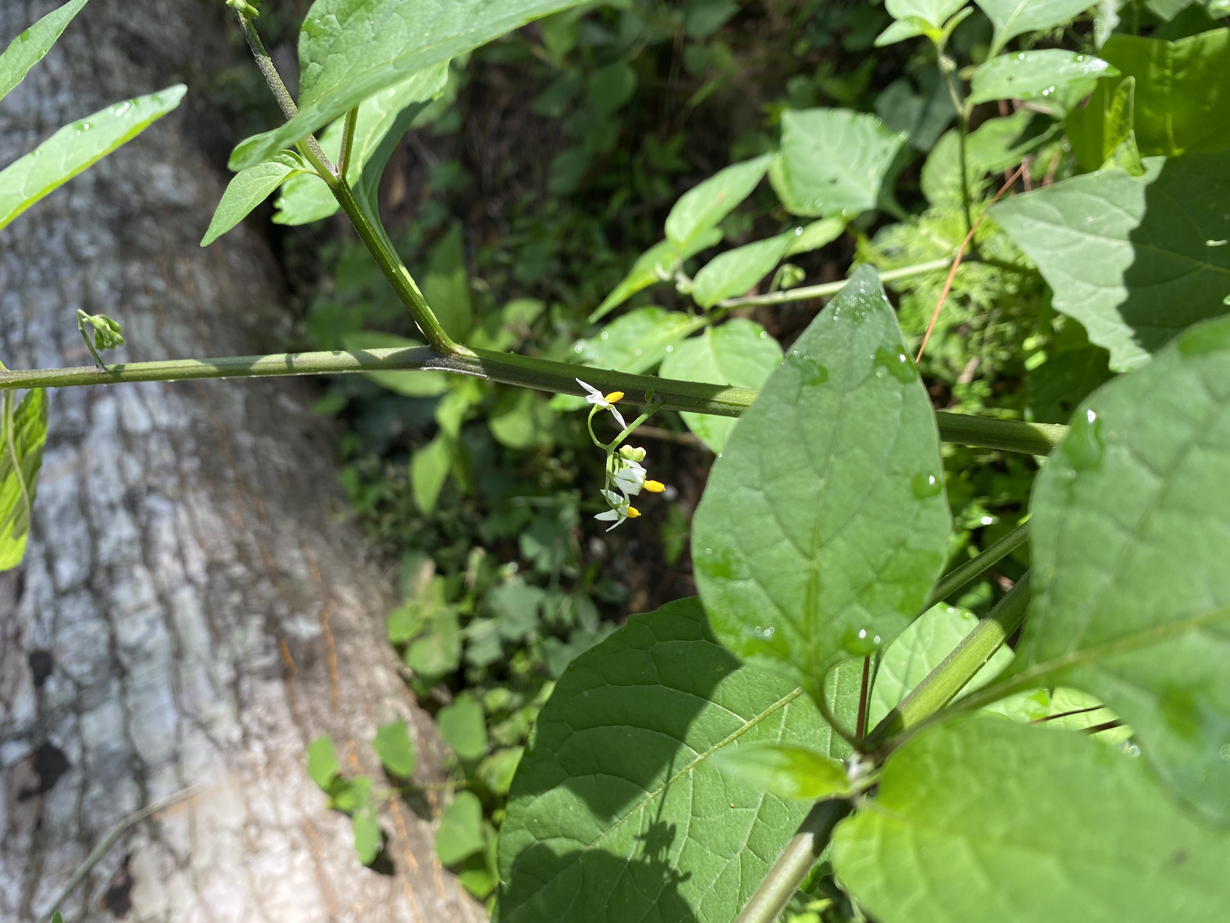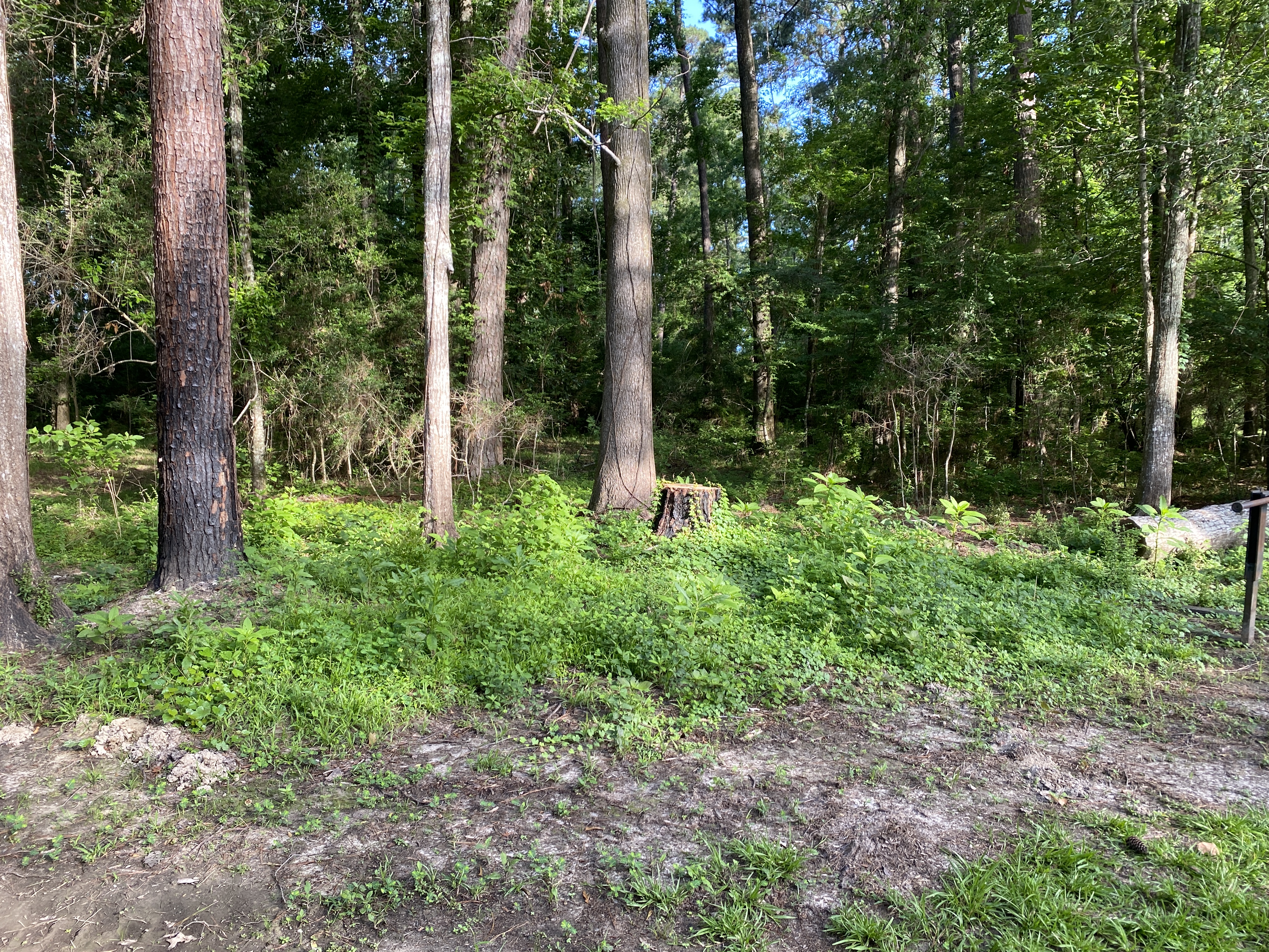 The more I looked, the more I found plants that I hadn't seen anywhere else -- Beefsteak plant, some new kind of tall Nightshade (that I would later find out was a rare species), Cuban jute -- and certainly not in this density. Since I'd lost some other small plants to the lawnmower and weed eater, I quickly taped off the area in the hopes to try to protect it -- just to see what else might come up in this newly fertile ground.
