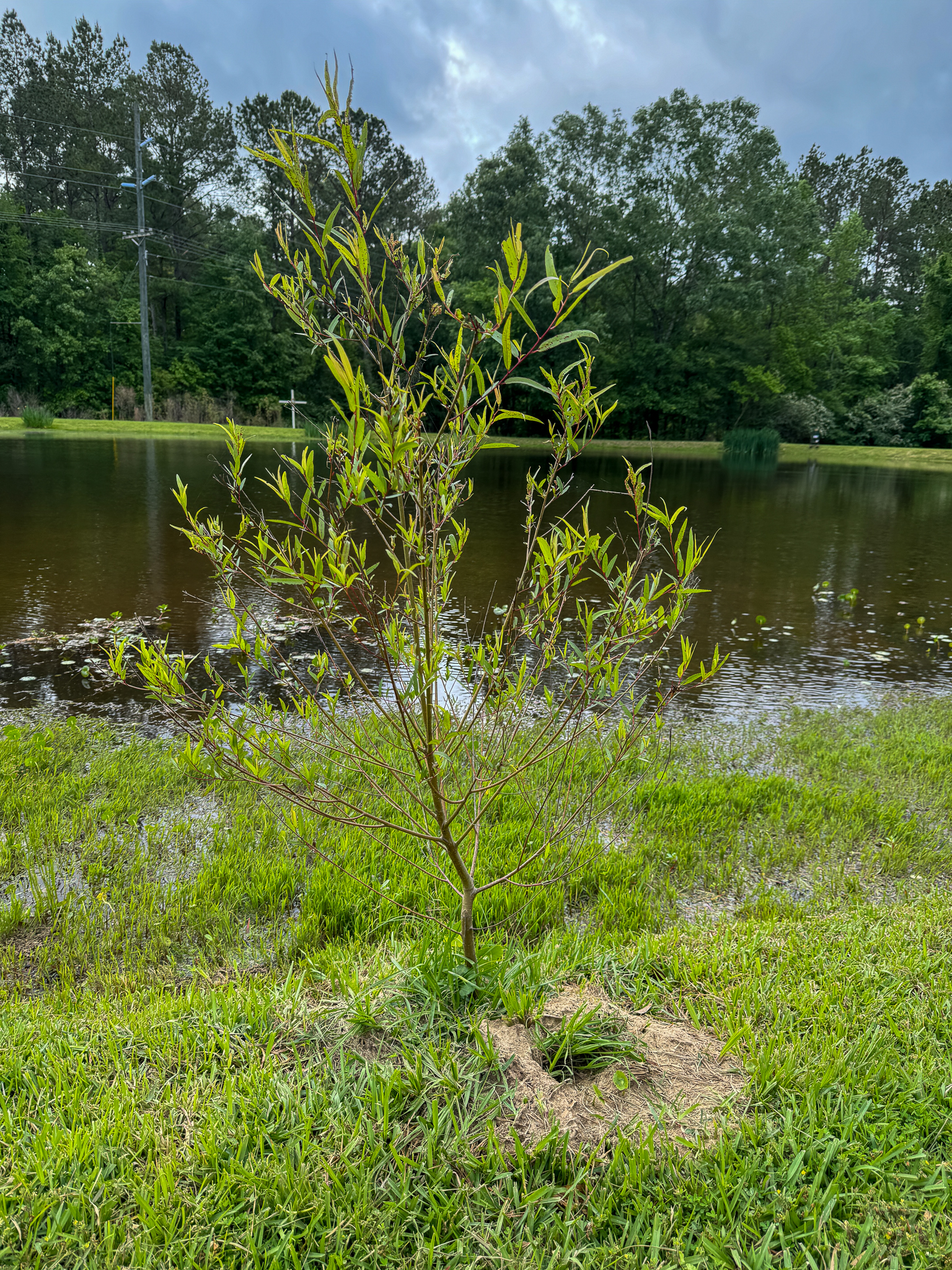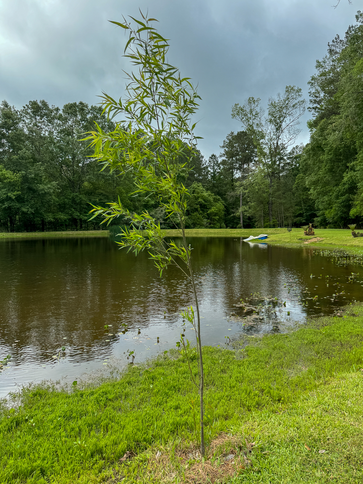 Willow #3 survived, shockingly, though it did accidentally get hit with the weed eater a couple of days ago. I think there's a chance it will hang in there, but the broken paddle boat needs to be moved away from it before it gets crushed or mowed again.