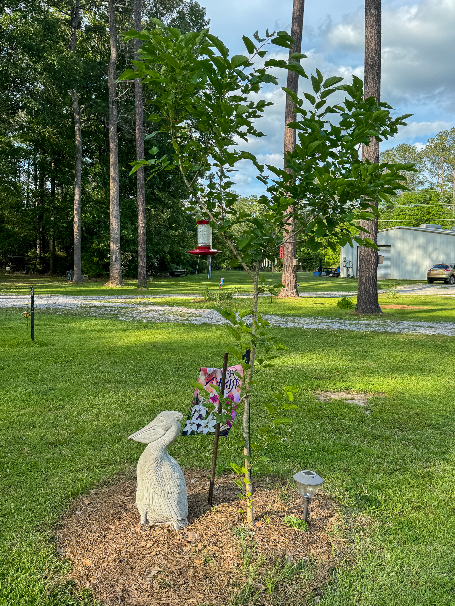 A gift from my friend Janine, this little tree has replaced the fully-dead Eastern Redbud that struggled so heavily in this spot. I think the cedar will be much better suited to be surrounded by these pines and living in full sun.