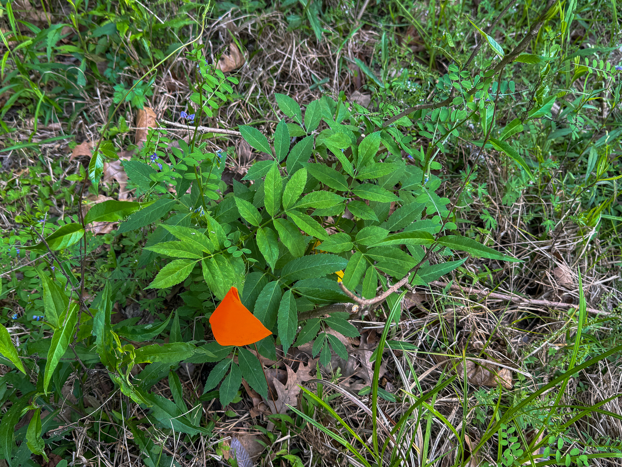 The Ranch Elderberry had completely died back last year between the drought and constant bombardment by the deer, and I'm happy to report that it survived all of that and so far is coming back pretty strong. It's small and shrubby, but it's alive, and I just hope that it can get some good growth in this year and I can keep the deer away.