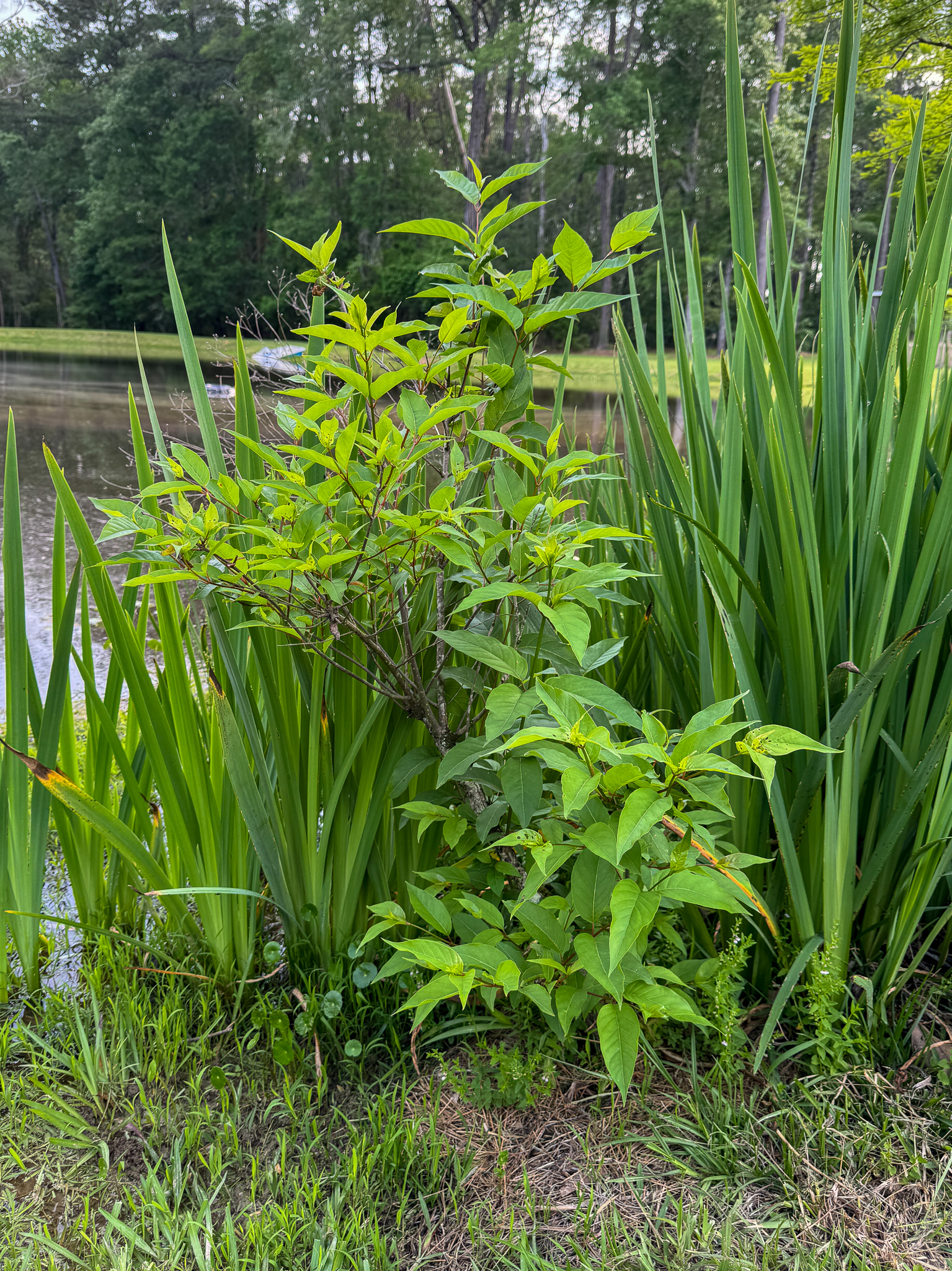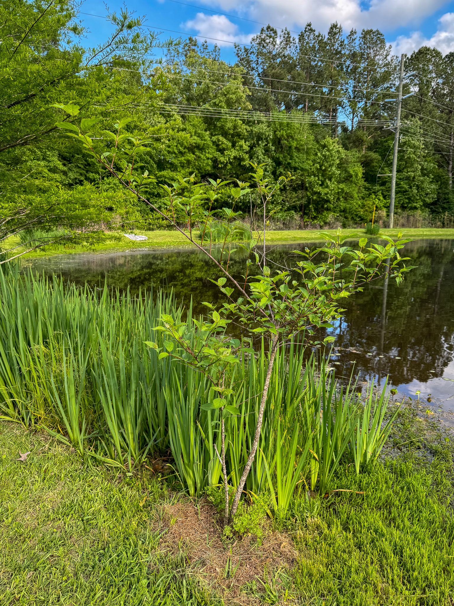 The Buttonbushes are having a great year so far, and since we avoided the last freeze this year, I'm really hoping we're going to get some flowers this summer. I think that would be a really beautiful addition to the pond — it's lovely, spherical blooms.