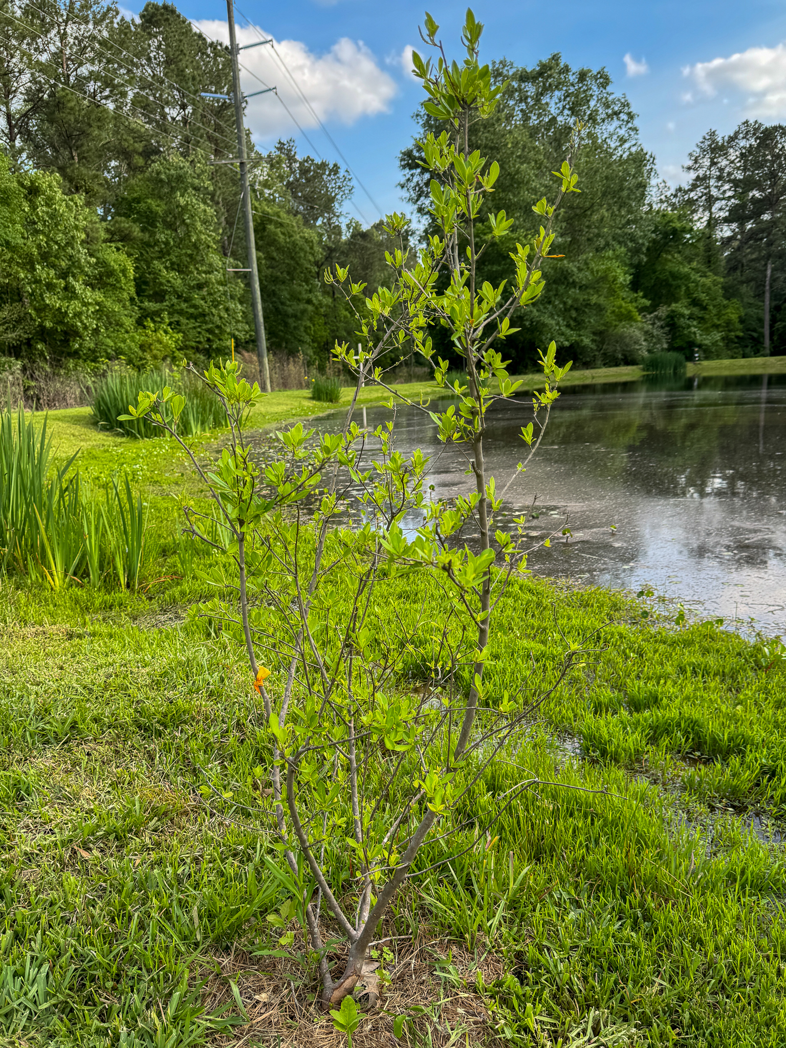 Buttonbush 1 started leafing out first, and got nibbled back a bit by the deer, but now is bushing out nicely in its slightly shadier spot. Lots of great new growth the last couple of weeks, specifically.