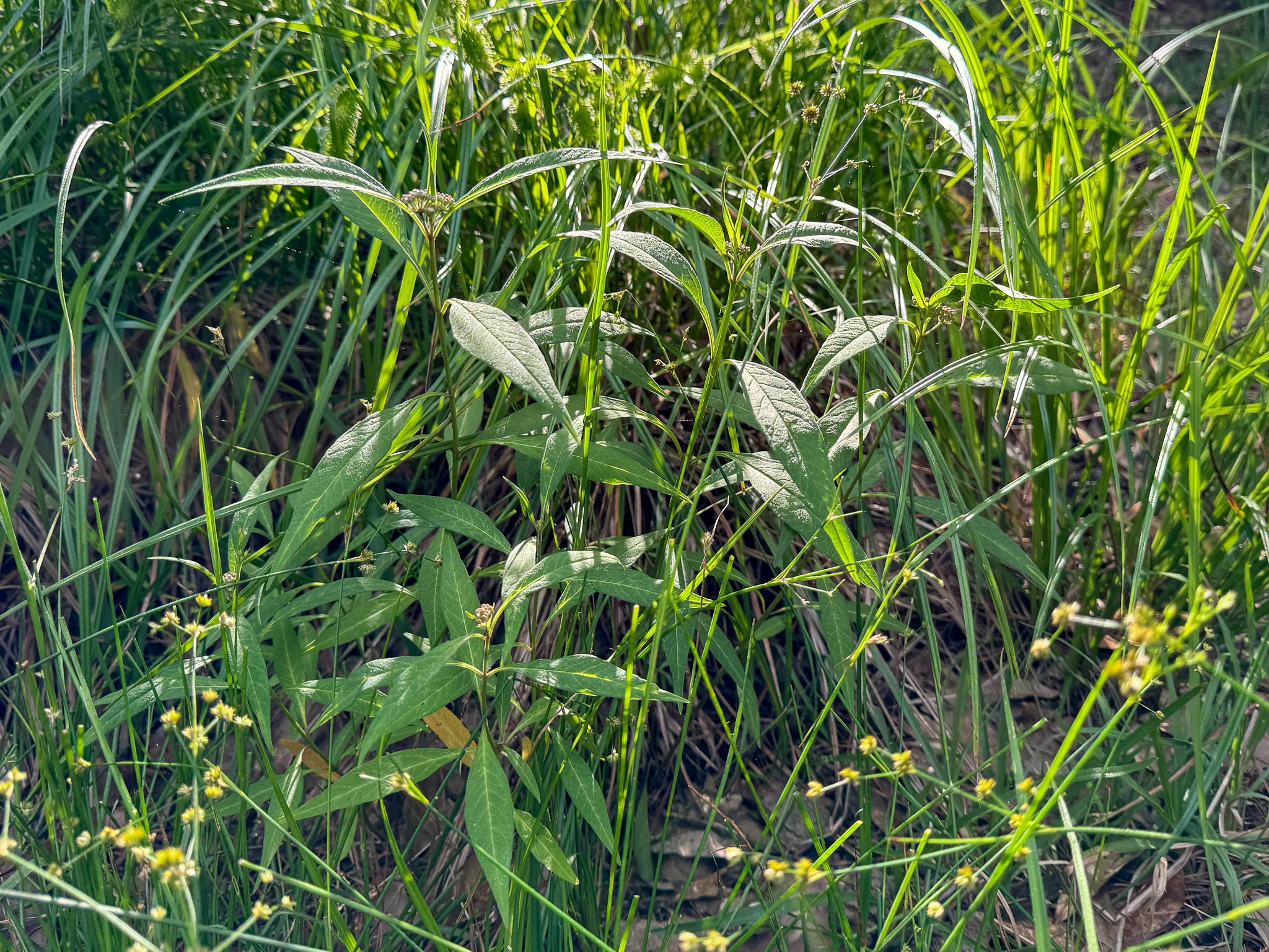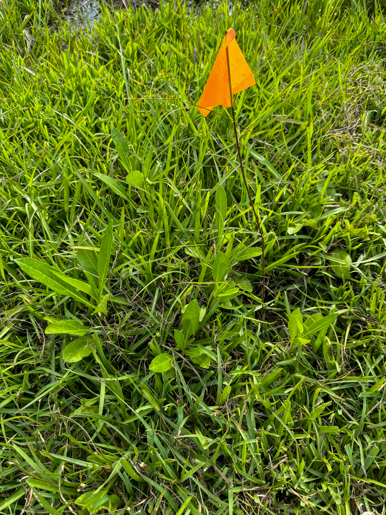 Possibly the most successful of last year's plantings, the Aquatic Milkweed continues to thrive in its wet spot in the Old Pond area. Both spots held on and seem to have gotten bigger, including the one that got run over by a truck this winter, and both are starting to bud out with this year's flowers already.