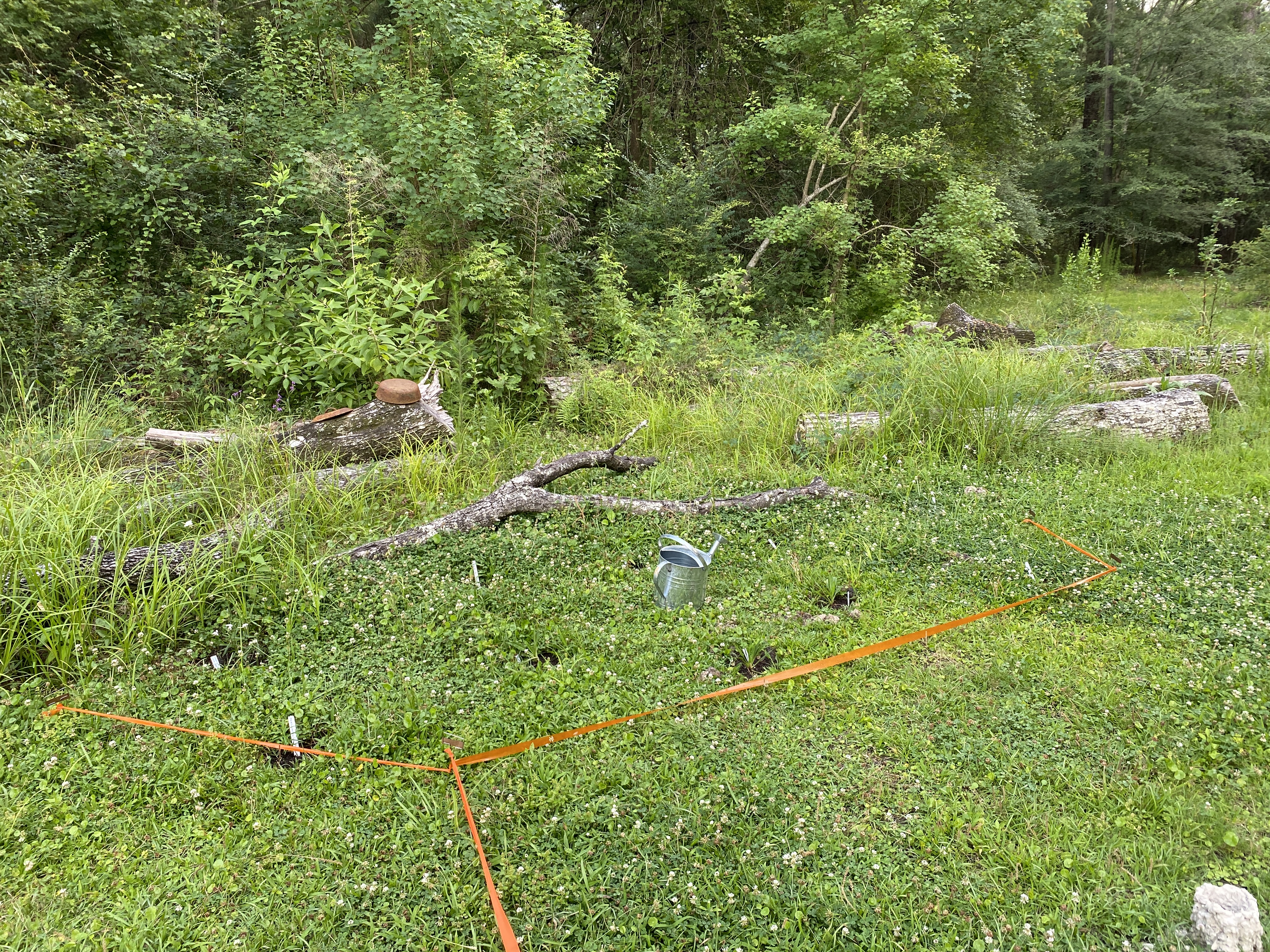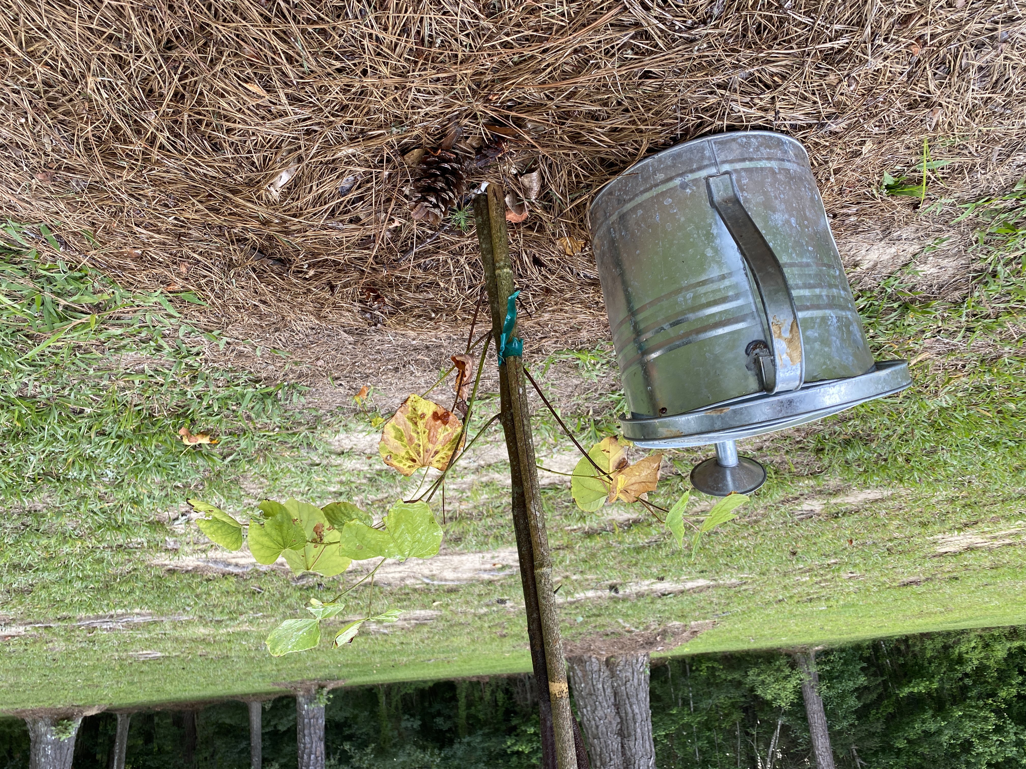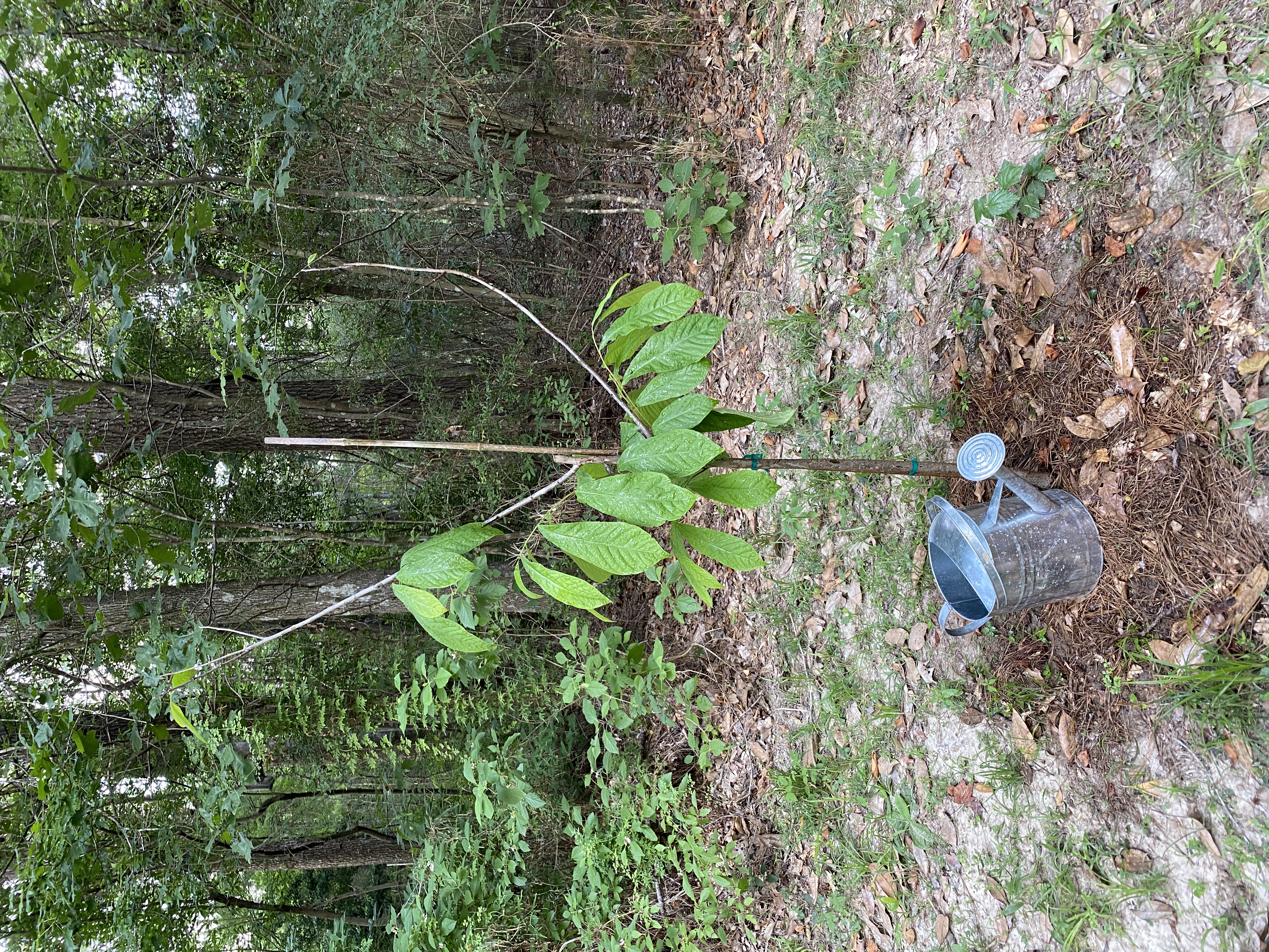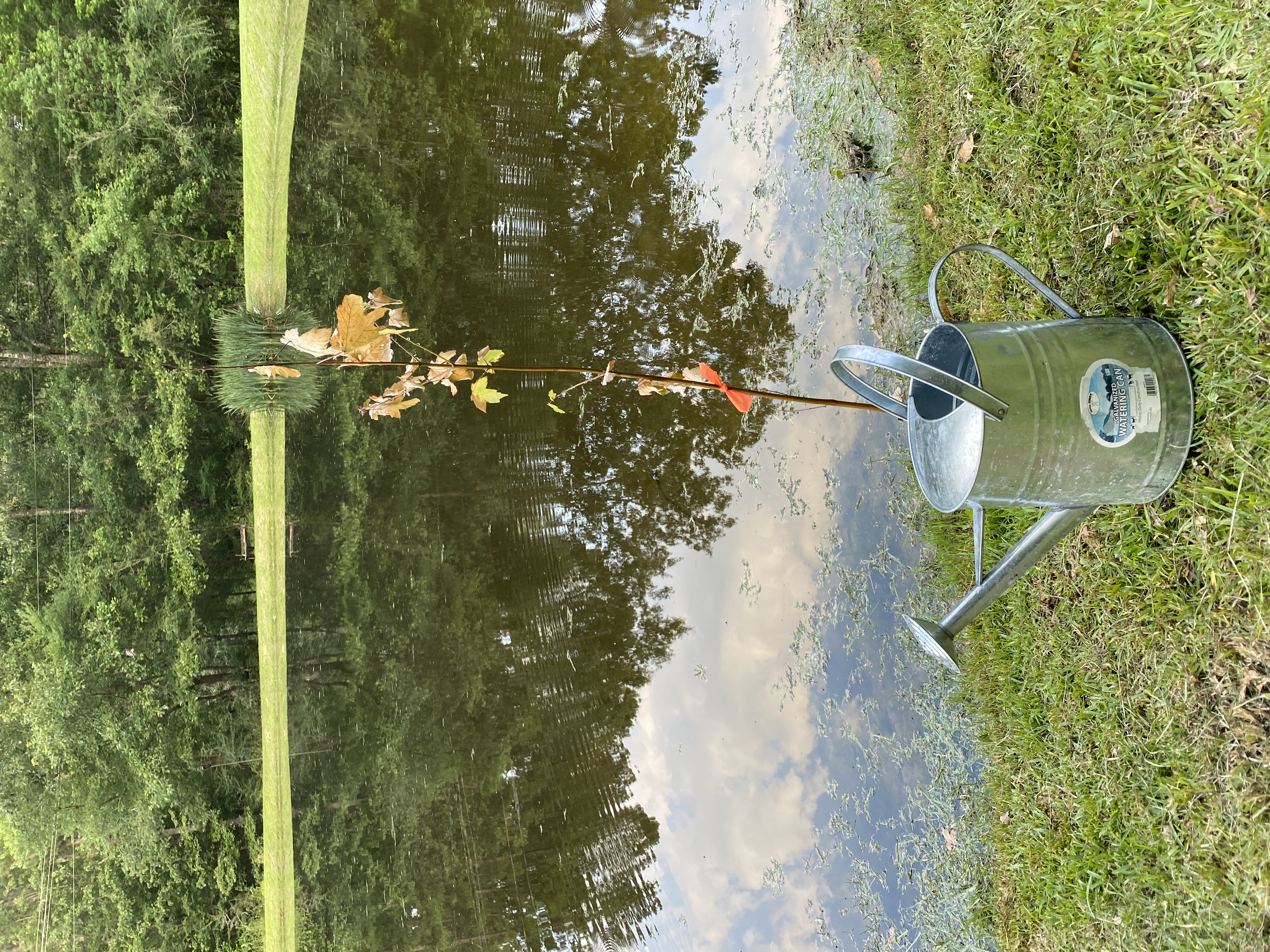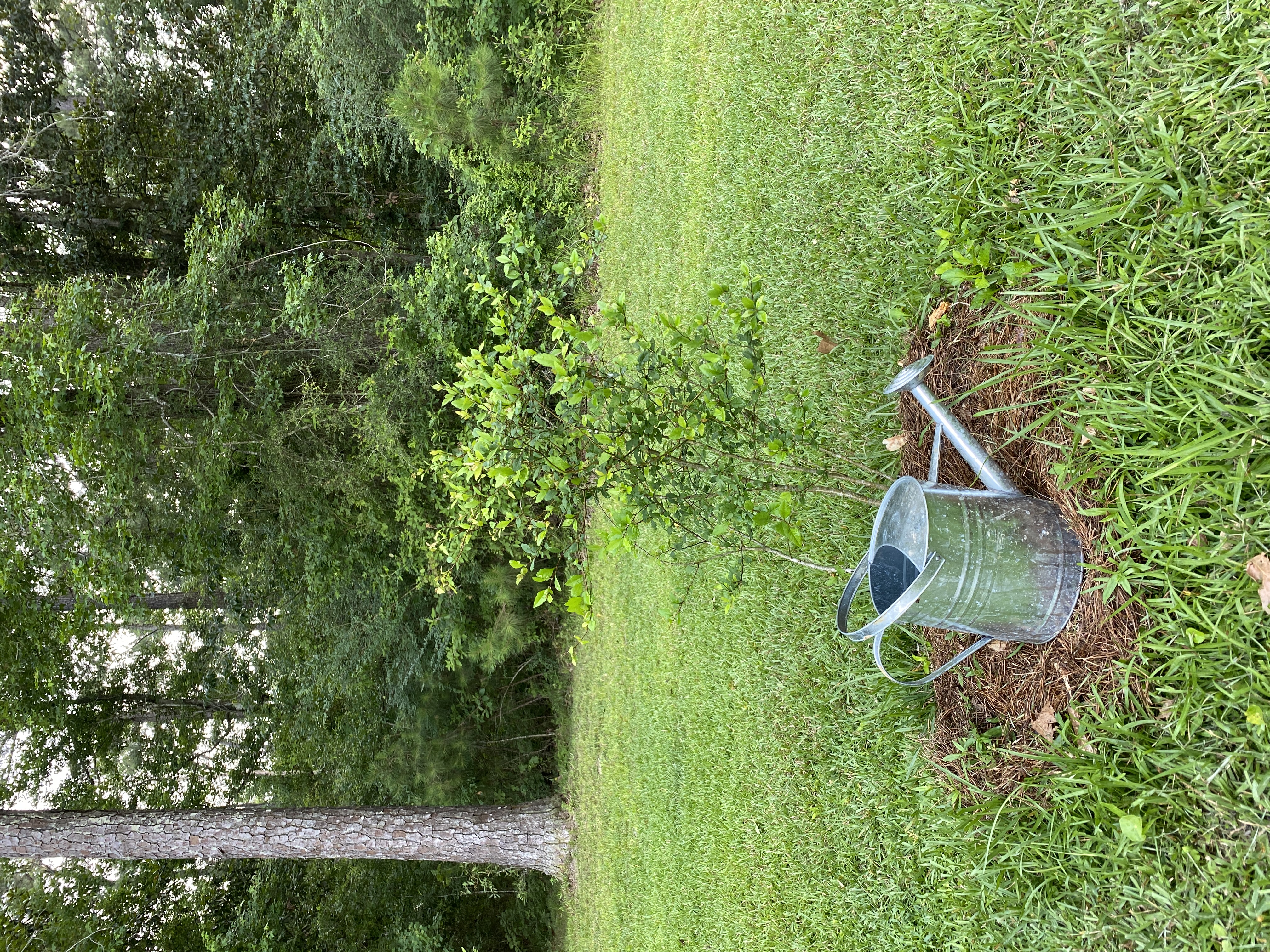 Titi 1 is a more upright plant, growing nearer to the existing Bald Cypress trees where a more upright, tree-like posture will suit it, I think. It also leaves room to add some more on either side if we find more water-loving plants! We really hope to fill in this Northeast corner of the pond nearest to us.