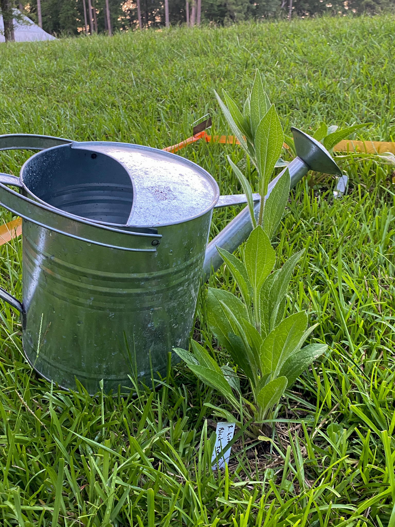 The most successful of the three Black-eyed Susan plants in the Dry Patch — already taller than the Watering Can!
